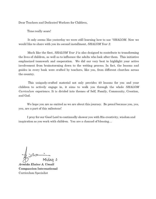 This curriculum set of 40 lessons provides inclusive biblical education and health awareness instruction for children ages six to eight, primarily for adapted for the Philippine culture. Topics include self-awareness, the importance of family, serving the community, stewardship and faith development. Each lesson includes a material list, instructions for the teacher, interactive application activities, reproducible activity sheets, and take-home projects.