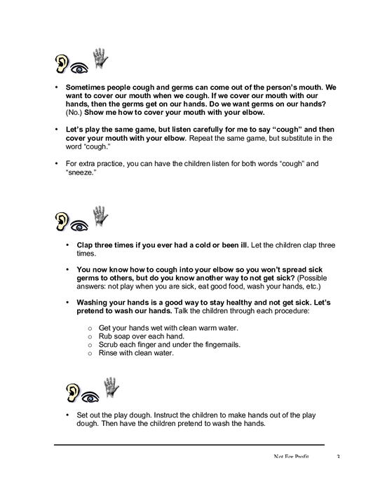 Tags: 3-5 years, Health/Safety, Preventative, Germs, Healthy Body, Hygiene, Preventing Illness, Wash Hands, Lesson Plan