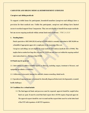 Program Guideline- Health: REVISED CAREGIVER AND SIBLING MEDICAL REFUND GUIDE